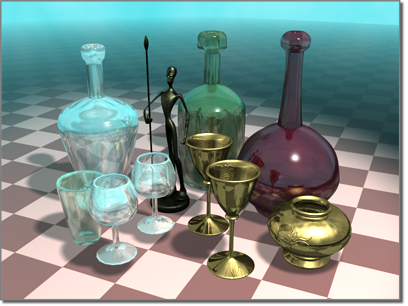 Sie können auch das Raytrace-Material verwenden, das denselben Raytracer einsetzt, um präzise Raytrace-Reflexionen und Refraktionen zu generieren. Zwischen dem Raytrace-Map und dem Raytrace-Material bestehen folgende Unterschiede: