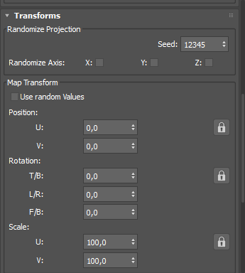 - Vergrößert oder verringert die Projektionsfläche nach U- und V-Achse.