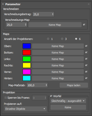 Verwenden Sie das Verschmolzene Quader-Map zur Vereinfachung der Projektion von verschmolzenen Textur-Maps, sodass Sie die Maps und die Ausgabe leicht anpassen können.