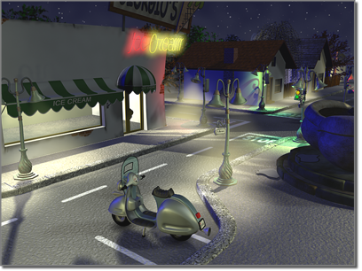 Eine Nachtszene, in der Standard-Lichtquellen eher für das Erzeugen einer Stimmung als für eine realistische Darstellung verwendet werden.