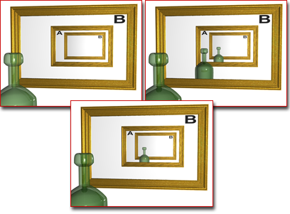 Rechts oben: Die Flasche wird von beiden Spiegeln reflektiert