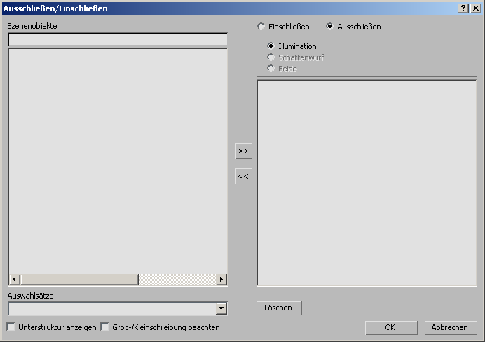 Mit diesen beiden Optionsfeldern geben Sie an, ob beim Raytracing die Objekte in der Liste auf der rechten Seite ausgeschlossen oder eingeschlossen werden.