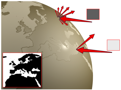 Ein Objekt mit einem Hochglanz-Map. Das Meer reflektiert stärker als das Land.