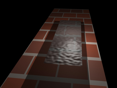 Die Refraktion der Kacheln hinter dem Glas wird vom Relief-Map verzerrt.