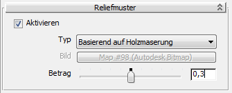 Wenn diese Option aktiviert ist, wird ein Reliefmuster ähnlich einem Relief-Map für die Holzoberfläche erstellt. Vorgabe = Aktiviert.