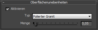 Steuert die Höhe der Oberflächenunebenheiten. Bereich: 0,0 bis 1,0; Vorgabe=0,05.