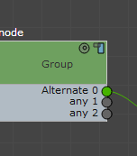 Beim Gruppenknoten auf der linken Seite muss Alternative 1 nach oben verschoben werden, bevor das zusätzliche Socket "Beliebig" entfernt werden kann.