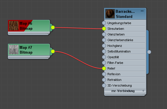 Ein Material mit einem Map für Streufarben und einem weiteren als Relief-Map