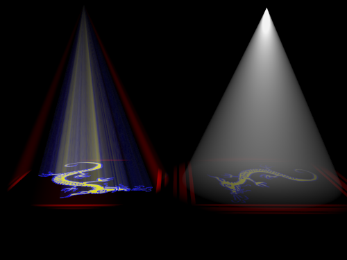 Anmerkung: Lichtquellen projizieren Maps nur innerhalb ihrer Kegel, auch wenn "Overshoot" aktiviert ist.