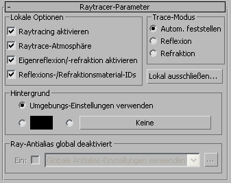 "Raytracer-Einstellungen", damit das Rollout "Raytracer - Globale Parameter" geöffnet wird.
