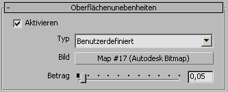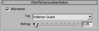 Steuert die Höhe der Oberflächenunebenheiten. Bereich: 0,0 bis 1,0; Vorgabe=0,05.