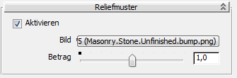 Wenn diese Option aktiviert ist, wird ein Reliefmuster auf das Material angewendet. Vorgabe = Deaktiviert.