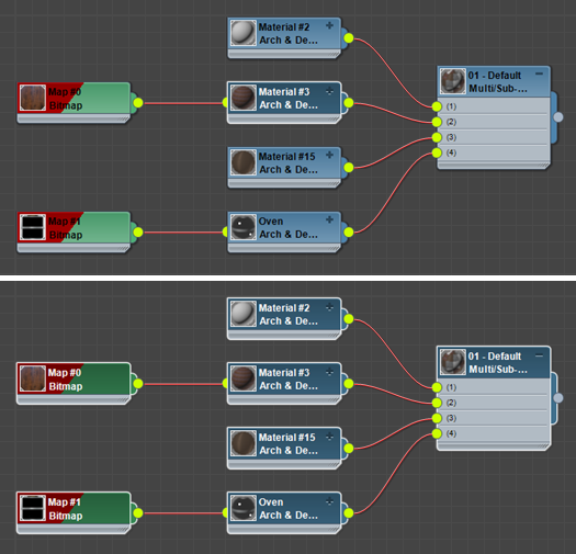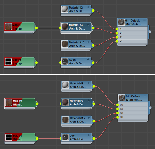 - Wählt alle Knoten in der aktuellen Ansicht aus. Dies enthält alle Materialien, Untermaterialien und Map-Knoten in allen Hierarchien, die die ausgewählten Knoten enthalten.