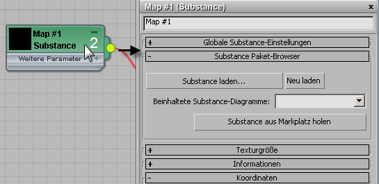 Aus praktischen Gründen empfiehlt es sich, für die Zuweisung von Substance-Maps den erweiterten Material-Editor (EME) anstelle des kompakten Material-Editors zu verwenden. Wenn Sie jedoch den kompakten Material-Editor bevorzugen, gehen Sie wie folgt vor: