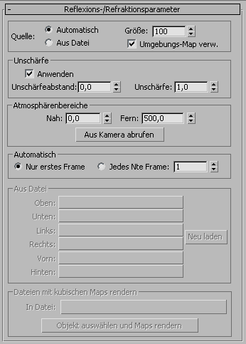 Diese Steuerelemente sind nur aktiv, wenn „Automatisch“ die aktive Quelle für die Reflexions-/Refraktions-Maps ist.