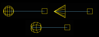 Repräsentationen von Ziellichtern in Ansichtsfenstern mit kugelförmiger, Spotlicht- und Netzverteilung