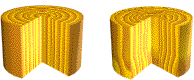 Das Holz-Map ist ein dreidimensionales Prozedur-Map, das ein welliges, gemasertes Muster im gesamten Volumen eines Objekts rendert. Sie können die Richtung, Stärke und Komplexität der Maserung bestimmen.
