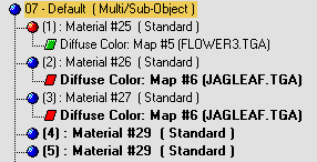 Die Namen von instanziierten Materialien und Maps werden auch in Fettschrift angezeigt.