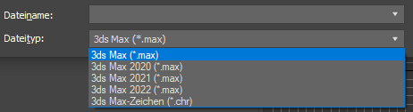 Wählen Sie aus der Dropdown-Liste Dateityp eine frühere Version von 3ds Max aus.