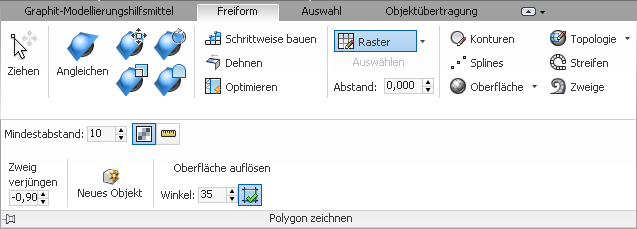 Gruppe "Polygon zeichnen" in maximierter Multifunktionsleiste mit Erweiterung