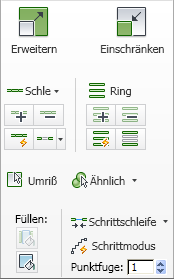 Die Gruppe "Auswahl ändern" bietet Hilfsmittel für das allgemeine Erweitern und Reduzieren von Unterobjektauswahlen sowie im Hinblick auf Schleifen und Ringe.