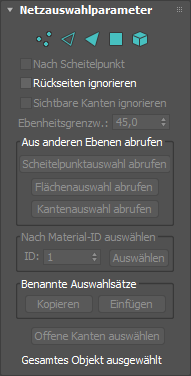Mit den Symbolen im oberen Bereich des Rollouts "Auswahl" können Sie die Methode der Unterobjektauswahl bestimmen.