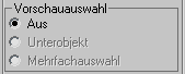 Mit dieser Option können Sie eine Unterobjektauswahl in einer Vorschau anzeigen, bevor Sie sie bestätigen. Sie können die Vorschau auf der aktuellen Unterobjektebene anzeigen oder mit der Maus automatisch zwischen Unterobjektebenen wechseln. Folgende Optionen sind verfügbar: