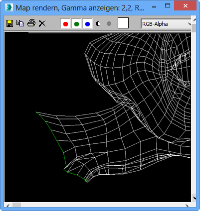 Klicken Sie zum Ändern der Nahtfarbe auf das Farbfeld. Die Vorgabefarbe (Grün) ist dieselbe, die auch für die Nahtkanten im Dialogfeld UVWs bearbeiten verwendet wird; die beiden Farben können aber getrennt eingestellt werden.