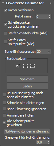 - Setzt alle Scheitelpunktgewichtungen zurück auf die ursprünglichen Werte, die für die Hüllen aller Bones errechnet wurden.