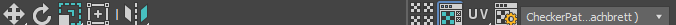 In das Dialogfeld "UVWs bearbeiten" wird eine Schachbretttextur namens "CheckerPattern (Checker)" aufgenommen, die für die Überprüfung verzerrter Bereiche des Textur-Mappings nützlich ist. Vorgabemäßig wird diese Textur im Hintergrund angezeigt, wenn Sie nach dem Anwenden von "UVW zuweisen" auf ein Objekt den Editor zum ersten Mal öffnen. Damit das Muster auf den Objekten in Ansichtsfenstern angezeigt wird, die Texturen anzeigen, wählen Sie es aus der Dropdown-Liste aus, auch wenn es bereits im Editor aktiv ist.