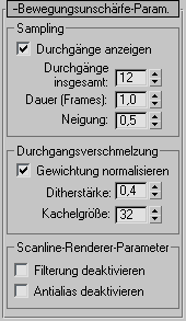 Diese Steuerelemente werden nur auf das Rendern des Bewegungsunschärfe-Effekts, aber nicht auf die Vorschau in Ansichtsfenstern angewendet.