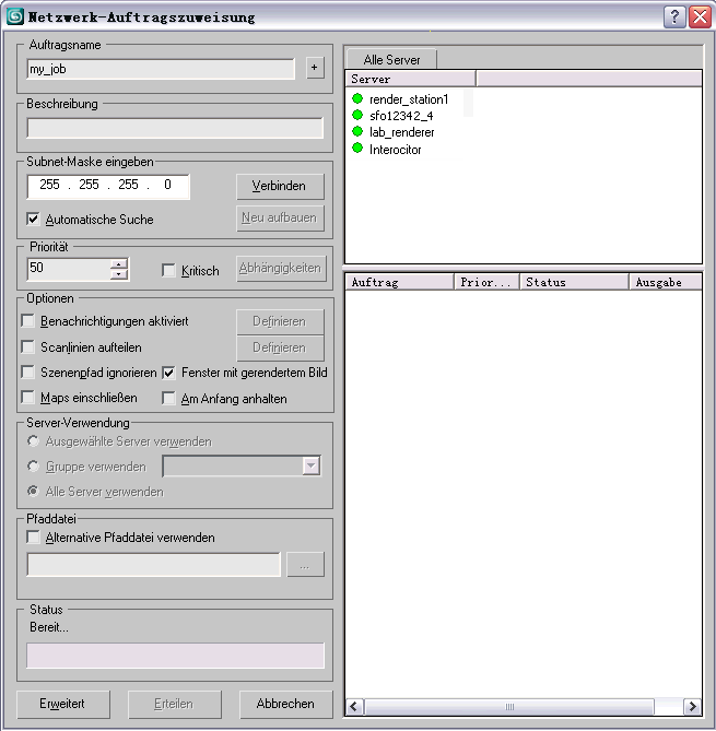 3ds Max öffnet das Dialogfeld Netzwerk-Auftragszuweisung.