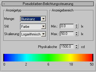 Bei einer Renderausgabe mit Pseudofarbe wird die Spektrumleiste unter dem Pseudofarbbild angezeigt und trägt die Bezeichnung "Luminanz" oder "Illuminanz".