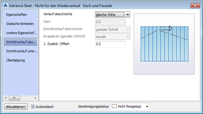 1. Zusätzl. Offset Die Fassadenprofile überlappen den Bereich. Der Versatz kann positiv, negativ oder gleich Null sein.