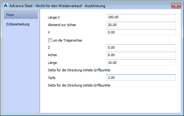 Dialogfeld Schräge Ausklinkung: Registerkarte Form
