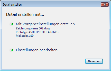 - Es wird ein Dialogfeld angezeigt. Aus diesem Dialogfeld können Sie zwischen zwei Optionen wählen, um das Detail zu erstellen: