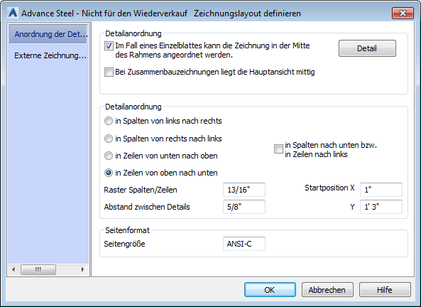 Hier erfahren Sie mehr über die verfügbaren Layoutoptionen im Dialogfenster Zeichnungslayout definieren.