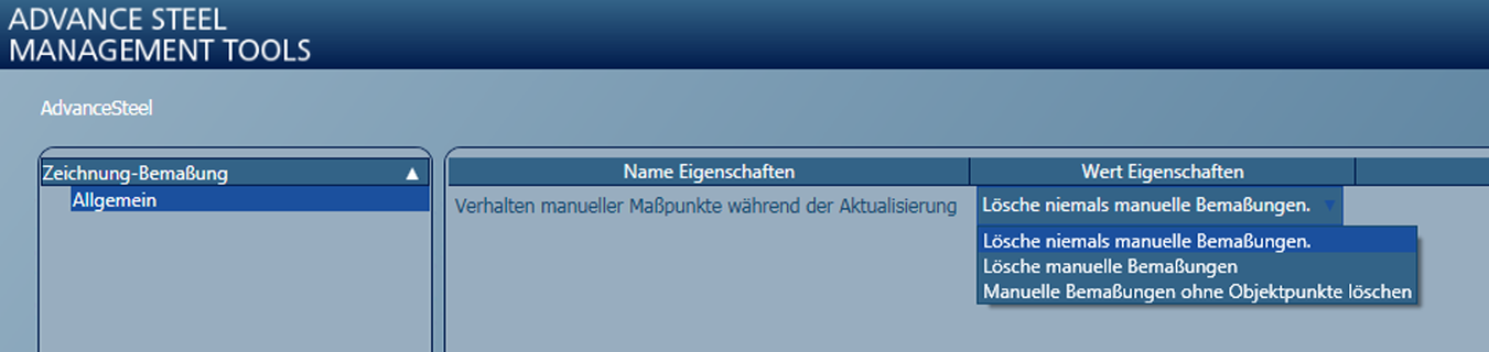 Erfahren Sie mehr über die einzelnen Optionen zur Vorgabe Verhalten manueller Maßpunkte während der Aktualisierung.