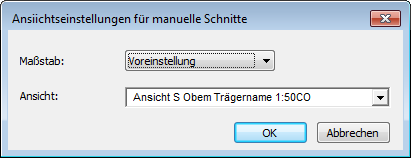 | Ansicht | Dieses Kombinationsfeld enthält eine Liste aller in Advance Steel verfügbaren Ansichtsanfragen, die beim Erstellen manueller Schnittansichten verwendet werden. |
