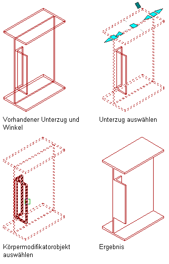 Die folgende Abbildung zeigt die Verwendung eines Winkels als Körpermodifikator beim Einfügen eines Unterzugs.