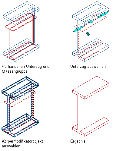 Die folgende Abbildung zeigt, wie Sie einen Unterzug durch eine als Körpermodifikator verwendete Massengruppe ersetzen.