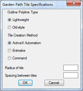 The following shows the contents of the DCL file containing the dialog and its tiles with their attributes for the Garden Path Tile Specification dialog box: