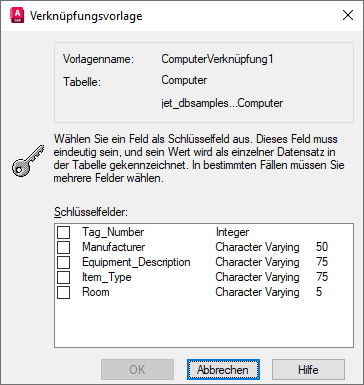Achtung: Die Auswahl einer großen Anzahl von Schlüsselfeldern kann die Leistung der Verknüpfungsauswahl und anderer Konnektivitätsoperationen beeinträchtigen.