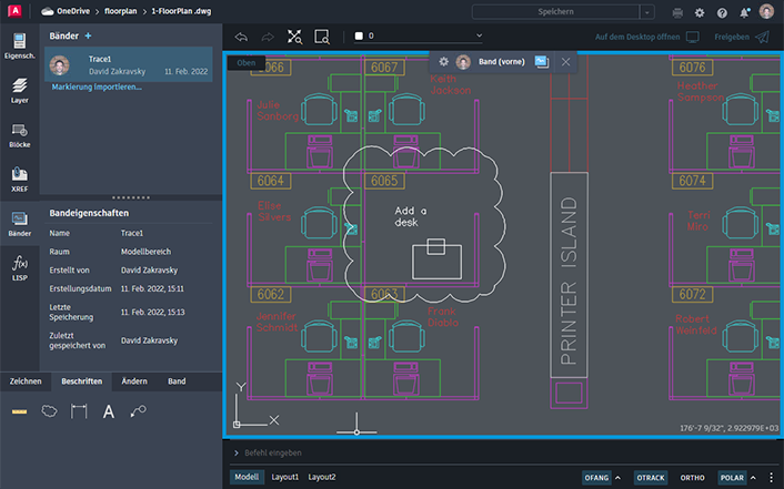Die Funktion Band ist ab Version 2022 in den AutoCAD-Web- und Mobil-Apps und AutoCAD-basierten Produkten verfügbar. Sie bietet eine Funktion für Zusammenarbeit und Markierung, mit der Sie Änderungen an einer Zeichnung vornehmen können, ohne die vorhandene Zeichnung ändern zu müssen.