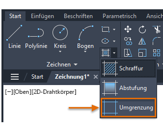Klicken Sie auf der Registerkarte Start in der Gruppe Zeichnen auf Umgrenzung, oder geben Sie den Befehl UMGRENZUNG ein.