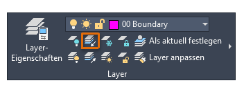 Klicken Sie in der Multifunktionsleiste auf der Registerkarte Start in der Gruppe Layer auf das Werkzeug Isolieren. Geben Sie alternativ LAYISO in der Befehlszeile ein.