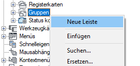 Unten in der Struktur der Multifunktionsleisten-Gruppen wird eine neue Gruppe (mit der Bezeichnung Gruppe1) angefügt.