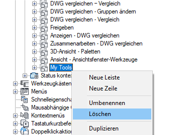 Der kopierte Werkzeugkasten wird unter dem Knoten Multifunktionsleiste