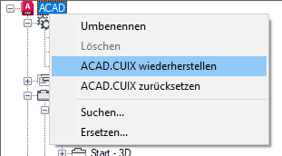 Anmerkung: Es können nur CUIx-Dateien, die sich im Ordner UserDataCache im Installationsverzeichnis des Programms befinden, zurückgesetzt werden.