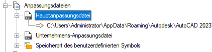 - Navigieren Sie im Explorer zu <Laufwerk>:\Benutzer\<Benutzerprofilname>\AppData\Roaming\Autodesk\<Produktname>\<Versionsnummer>\<Sprache>\support\<Anpassungsdateiname>.cuix.